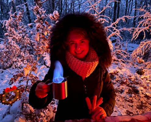 Zum Abkühlen zwischendurch heißt es raus auf die Winterwiese. Mit Hölzern, Schnüren und Skiern geht es nun in kleinen Teams ans Schlitten bauen. Setzen Sie auf Kreativität und Stabilität und erobern Sie die Piste. Mal sehen, wer bei der anschließenden Rodelgaudi ganz vorn liegt!